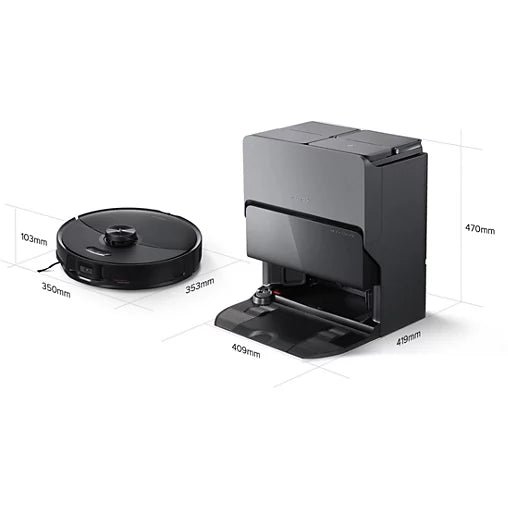 - Sac à poussière de la station : 3,0 L – Bac à poussière du robot : 0,270 L