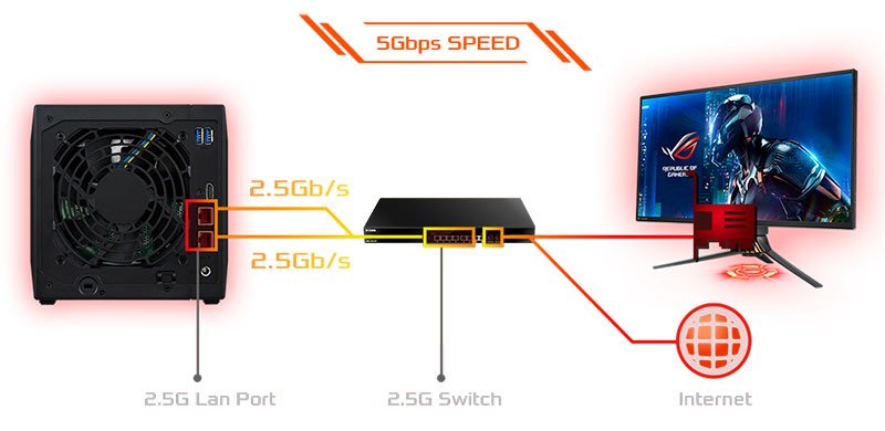 - Deux ports 2,5 GbE fournissant jusqu’à 5 Gbps sous agrégation de liens.