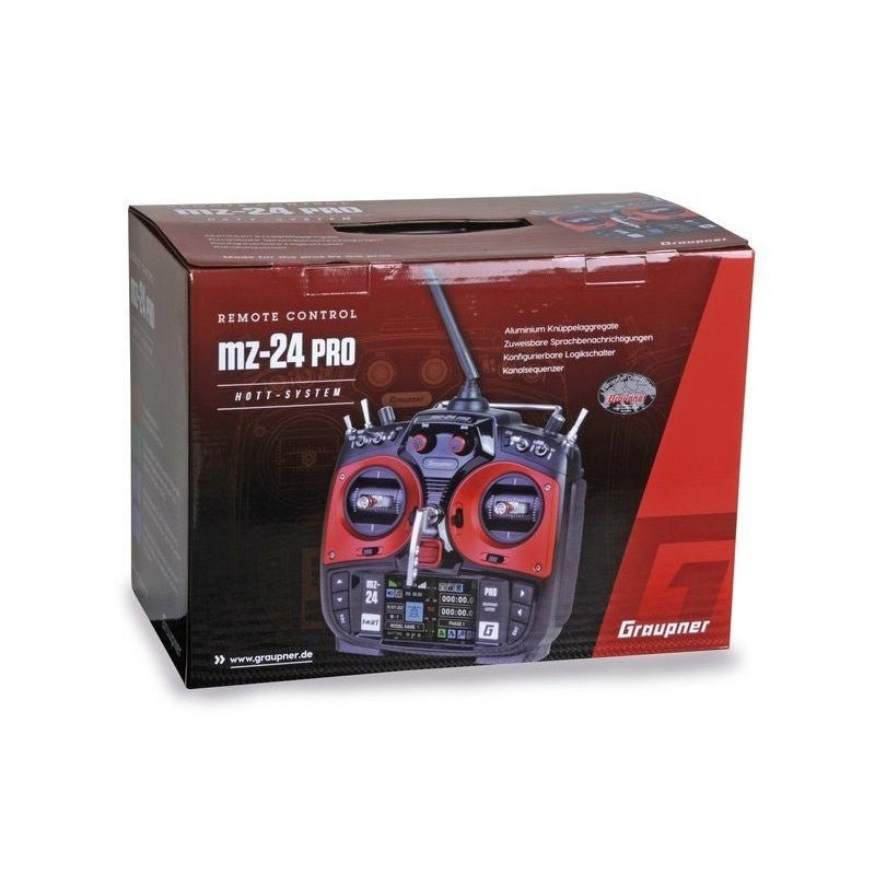 Le MZ24 Pro de Graupner /SJ est un émetteur 12 voies HoTT 2.4 Ghz. Il possède la technologie 2.4Ghz bidirectionnelle, ce qui vous permet d’obtenir en temps réel des informations sur l’état du modèle. Le MZ24 combine un design esthétique et ergonomique avec la technologie HoTT.Avec ses 12 voies, la télémétrie avec data log et un large écran 3.5″ LCD tactile, la MZ24 est un excellent choix pour tous ceux qui souhaitent un émetteur 12 voies de qualité !Sa Micro carte SG contient la version Allemand, Français et anglaise et peut être facilement installée/VERSION LIVREE SANS RECEPTEUR