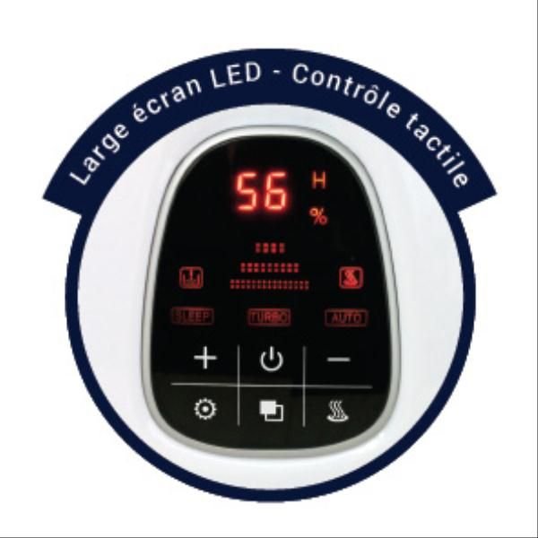 Humidificateur programmable avec humidification froide ou chaude et diffuseur d’arômes – L’humidificateur Lissehum EWT, à technologie ultrasonique, recrée une vapeur d’eau extrafine et naturelle pour humidifier une pièce trop sèche – Utilisable en toute saison, vous pouvez choisir entre une vapeur froide ou chaude – Pour votre confort, il est silencieux, doté de 3 vitesses d’humidification (lente, moyenne, rapide) et de 3 modes préprogrammés (Nuit, Normal, Turbo). Vous pouvez donc personnaliser l’humidification de votre pièce comme bon vous semble ! – Doté d’un hygrostat, il régule automatiquement le niveau d’humidité que vous souhaitez. Vous pouvez programmer le taux d’humidité souhaité d’une pièce de 30% à 70% en sachant que le taux idéal est de 50-70% – Pratique et moderne, il comporte un large écran LED avec contrôle tactile qui affiche les paramètres. Vous pouvez programmer le temps d’humidification grâce à sa minuterie de 8 h – Grâce à son tiroir diffuseur d’arômes parfumez et purifiez votre intérieur ! Son grand réservoir d’eau de 5L est amovible et il est doté d’un filtre anti-calcaire – Intelligent et doté d’une mémoire électronique, il vous avertie lorsque le réservoir d’eau est vide ou est à nettoyer (après 100h d’utilisation) – Avec ses lignes courbées et sa couleur moderne et brillante il s’intégrera parfaitement à votre intérieur.