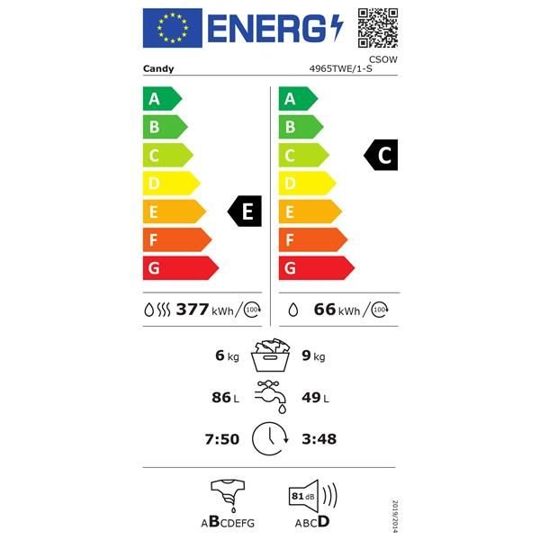 Toutes les caractéristiques du produit Lave-linge séchant frontal CANDY – CSOW4965TWE/1-S