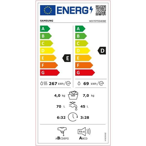 Toutes les caractéristiques du produit Lave-linge séchant frontal SAMSUNG – WD70T554DBE
