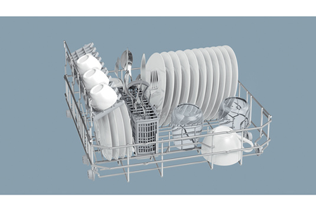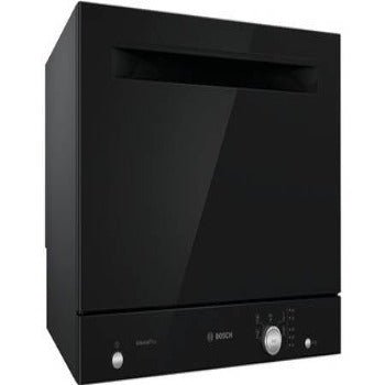 Le  lave-vaisselle compact Bosch SKS51E36EU noir, bénéficie  d’une petite largeur (55 cm), d’une petite hauteur (45 cm) et d’une  capacité de 6 couverts, il trouve ainsi sa place sur un plan de travail. Ce mini lave-vaisselle est doté de  5 programmes, d’une  option Séchage Extra et d’un  Moteur EcoSilence Drive.
