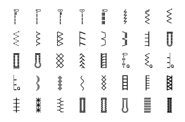 - 40 points intégrés, y compris 6 styles de boutonnières automatiques – Sélectionnez rapidement et simplement le point de couture souhaité via le clavier.