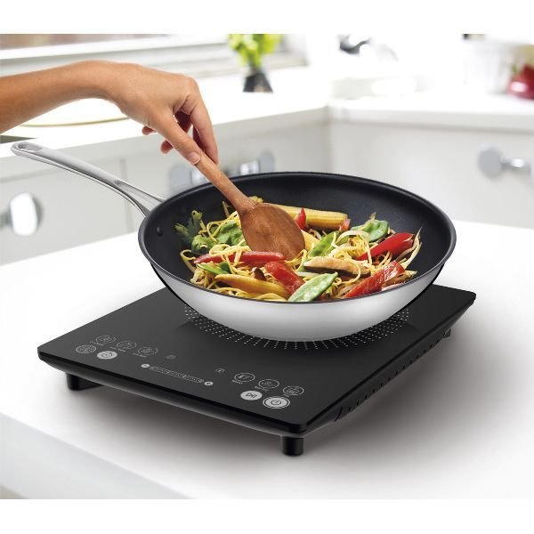 Plaque de cuisson induction – Everyday Slim – Un design élégant pour une cuisine facile ! – Gagner de l’espace et faciliter votre quotidien avec cette plaque qui vous offre tous les avantages de l’induction ! – Sa prise en main est facile et son design est élégant – Dotée de 6 programmes de cuisson, cette plaque vous offre des options infinies à portée de main – Son interface épurée et intuitive garantit un résultat optimal et sans effort – 6 programmes pour un large choix de préparation : Basse température / Mijoter / Bouillir / Cuisson rapide / Rissoler / Frire – 7 niveaux de puissance de 300 à 2100 W – Température jusqu’à 240°C – Minuteur 180 minutes à intervalle de 1 minute avec arrêt automatique – Fonction Pause : permet d’arrêter et de reprendre la cuisson en toute flexibilité – Cuisson sans effort : sans flamme avec détection automatique des ustensiles de cuisine, elle offre une technologie de pointe comme allumage rapide qui transfère la chaleur directement sur vos appareils – Écran digital facile à lire – Facile à nettoyer grâce à son revêtement en vitrocéramique – Arrêt automatique – Dimensions 34.8 x 44.2 x 8.4 cm – Coloris Noir – Puissance 2100 W – Garantie 2 ans.