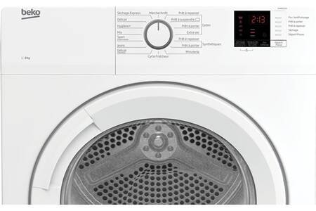 Ce sèche-linge à Évacuation Beko DA8013PA blanc avec porte en verre non réversible, est doté d’une capacité de 8 kg, 15 programmes dont le Cycle Fraîcheur : donne un coup de frais à vos vêtements, d’un tambour à Alvéoles Aquawave, d’un Afficheur Digital : contrôle simple et intuitif et d’un bandeau texte français.